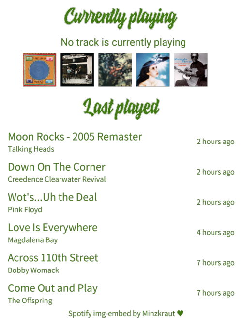 This week’s rotation! I greet you all (partially) from a tired stupor that makes me feel something like Lenny from OMAM – and immediately launch into a tangent. As one of the biggest abbreviators around, am I alone in thinking that people that abbreviate albums on online threads are annoying as fuck? Perhaps it’s a Continue reading